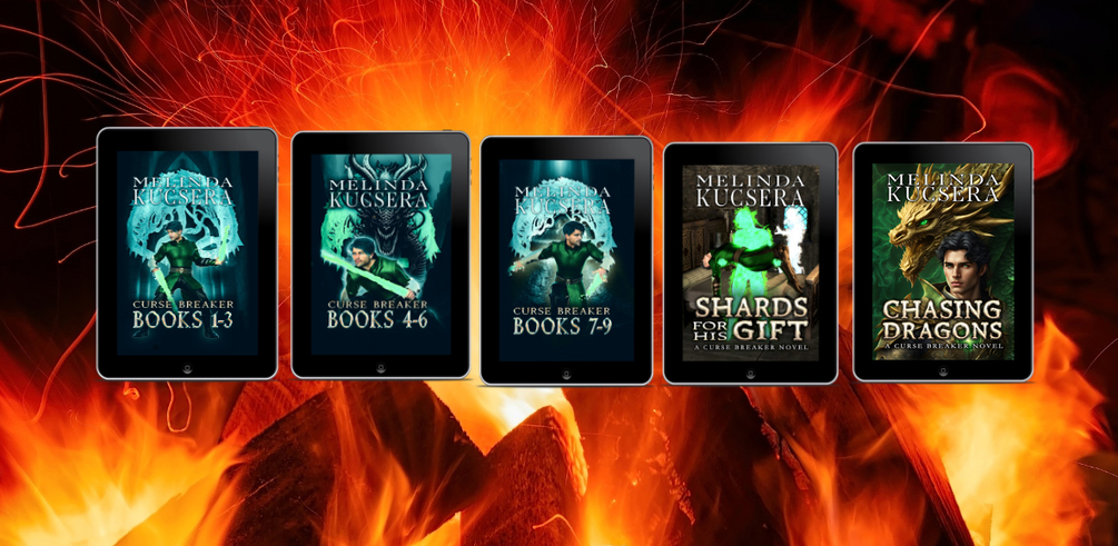 All 11 books currently published for the Curse Breaker series. They will be delivered as 3 ebook omnibuses: Curse Breaker Books 1-3, Curse Breaker Books 4-6, and Curse Breaker Books 7-9, plus Shards For His Gift & Chasing Dragons as separate ebooks.